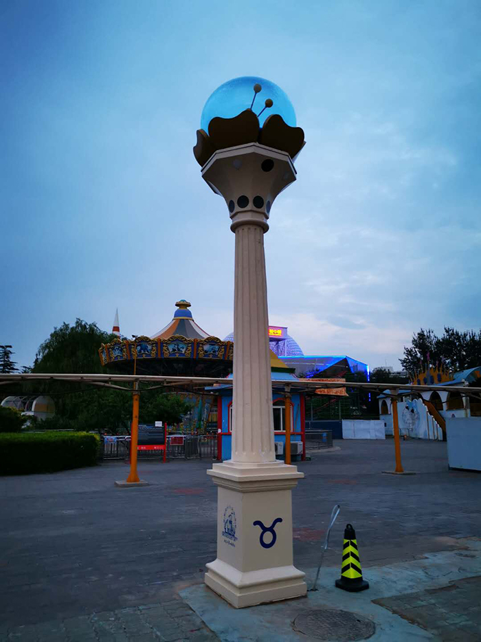 在設計中,信達電通以12星座為元素,分別將星座圖案及形象圖至于燈柱底座及頂部,并通過現代工藝實現其夜間景觀效果。