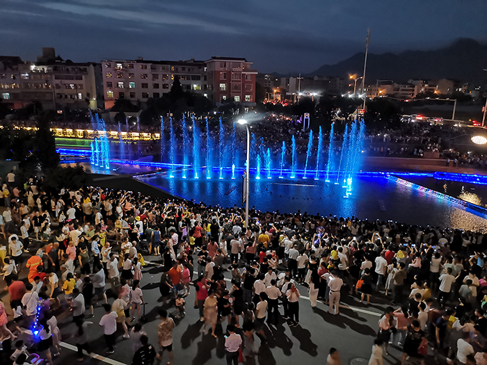 大陳江景觀帶音樂(lè)噴泉和水幕電影精彩呈現(xiàn),吸引了上萬(wàn)居民圍觀。