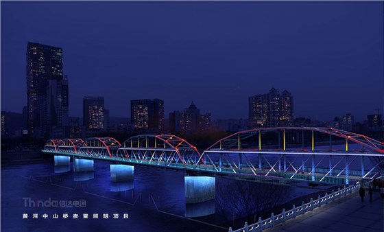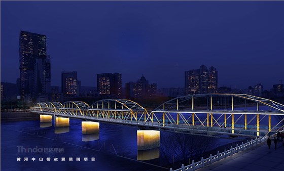 蘭州中山橋歷史悠久,建于清光緒年間,素有“天下黃河第一橋”之稱,全長234米,寬7.5米。信達(dá)電通邀請橋梁建筑設(shè)計師和信達(dá)照明設(shè)計師聯(lián)合主筆,暖黃光和藍(lán)光為主色調(diào),形成和諧夜景氛圍,既滿足夜間基礎(chǔ)照明照度,又通過燈光渲染將大橋體量在夜間凸顯,重拾大橋風(fēng)度。