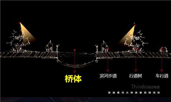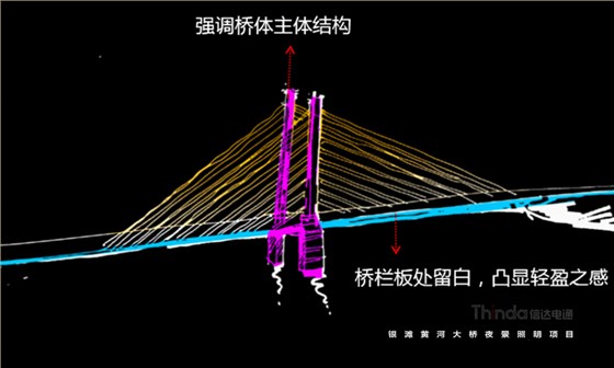 銀灘黃河大橋夜景亮化設(shè)計中我們以功能性、裝飾性照明為主,同時也避免高亮度、多光色對行車造成安全隱患。