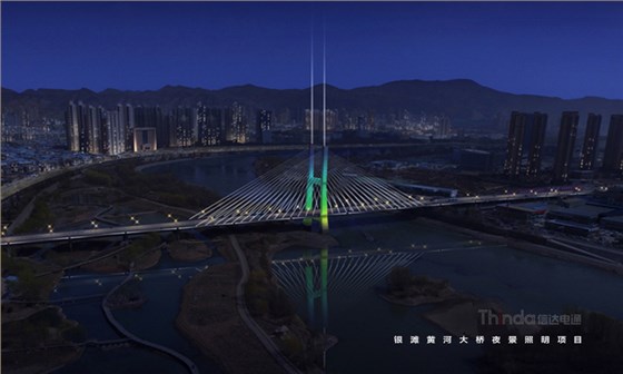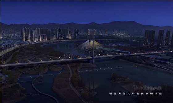 銀灘黃河大橋是蘭州市城市交通樞紐工程,北通蘭州中川國際機場,南達(dá)蘭州北站。信達(dá)電通在夜景亮化設(shè)計中以功能性、裝飾性照明為主,同時也避免高亮度、多光色對行車造成安全隱患。橋身和纜繩的彩光使得大橋成為夜間最獨特的風(fēng)景。