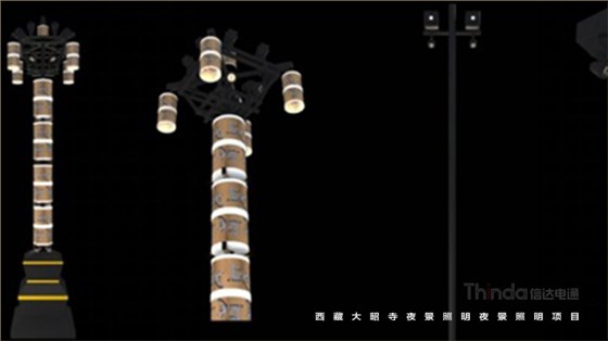 大昭寺四周的路燈設(shè)計(jì)融入轉(zhuǎn)經(jīng)筒和酥油燈的元素,造型富有美感又與大昭寺佛教形象和諧統(tǒng)一。燈具采用更加高效、節(jié)能、精致的ERCO投光燈,作為基礎(chǔ)照明灑亮路面。