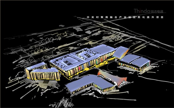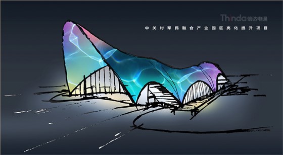 中關村軍民融合產(chǎn)業(yè)園區(qū)的亮化設計主要以建筑燈光為主體設計方向,用燈光的形式突出建筑結構特點,突出時尚、創(chuàng)新、科技、新潮的融合產(chǎn)業(yè)園。園區(qū)建筑結構整體簡潔、大氣,信達電通利用光影效果及景觀元素,打造東西、南北軸向的建筑縱身層次,整體以各種幾何形體組合而成,燈光在設計的同時尊重建筑本身的理念,優(yōu)化夜景氛圍,通過塊與面的結合,塑造一個大氣魄、大追求的文化產(chǎn)業(yè)新品牌。