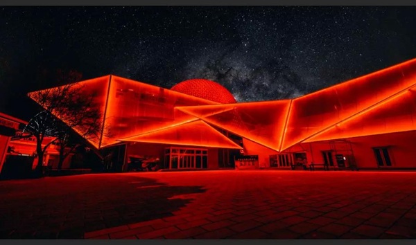 在光色的設(shè)計中,信達電通采用皓白、暖黃、科技藍等多種顏色漸變切換的設(shè)計手法。燈光重點勾繪外圍建筑輪廓,突出建筑的獨特結(jié)構(gòu),與球幕影院和廣場地面的投影形成互補和諧的夜景畫面。