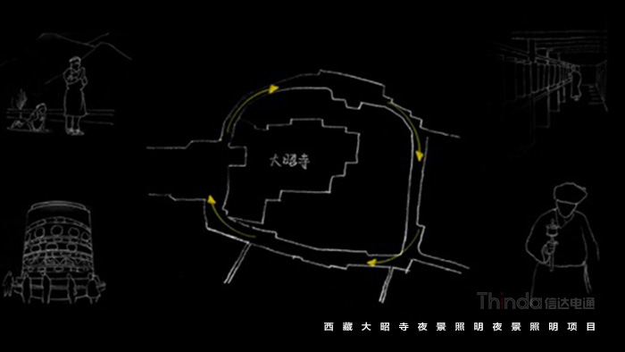為改善大昭寺區域照明現狀,打造符合西藏文化特色的夜景形象,同時迎接一年一度雪頓節,西藏市委政府開展大昭寺整體亮化提升項目。項目輻射大昭寺、八廓街、寺前廣場以及商業街一帶,由信達科技提供全過程咨詢服務和照明智控系統,清華大學建筑學院提供設計,良業照明進行施工。