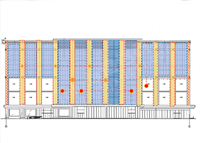本項目開展初期信達電通設計團隊開始對項目目前情況進行調(diào)研,調(diào)研發(fā)現(xiàn)現(xiàn)有照明建筑立面以大功率投光燈體現(xiàn),沒有很好的體現(xiàn)建筑結(jié)構(gòu)及商業(yè)氛圍,整體昭示性不強,廣場也僅是功能照明,面臨主街視點,整體夜態(tài)效果較黑,吸引力不夠,商業(yè)價值沒有很好體現(xiàn)。
